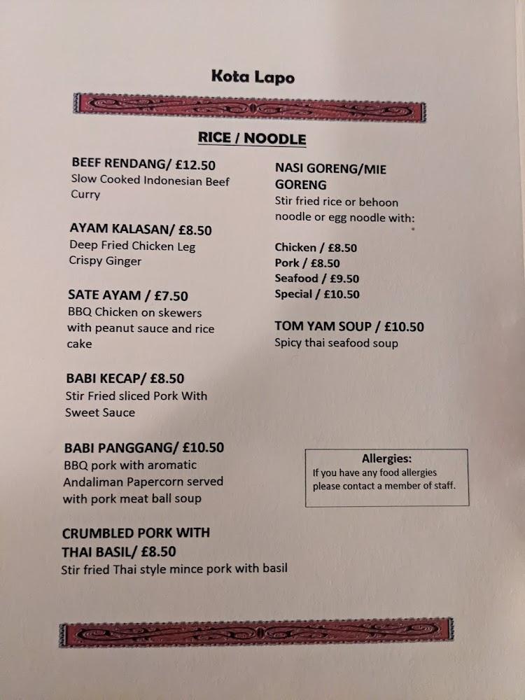 Kota Lapo is nestled on Station Rd in Hadfield, Glossop, an area known for its welcoming community vibes. The restaurant is a testament to the growing interest in Indonesian cuisine in the UK, occupying a charming space that radiates warmth and hospitality. The owners prioritize authenticity, ensuring the food reflects the true flavors of Indonesia, making it a must-visit culinary destination. The dining experience is enhanced by the casual atmosphere, which attracts tourists and locals alike who enjoy a good meal without pretentiousness. With parking available for free on the street, accessibility is straightforward, allowing diners to focus solely on savoring their meal. Open every day of the week, Kota Lapo invites patrons to indulge in delightful dishes any day, with dinner reservations recommended to avoid disappointment.